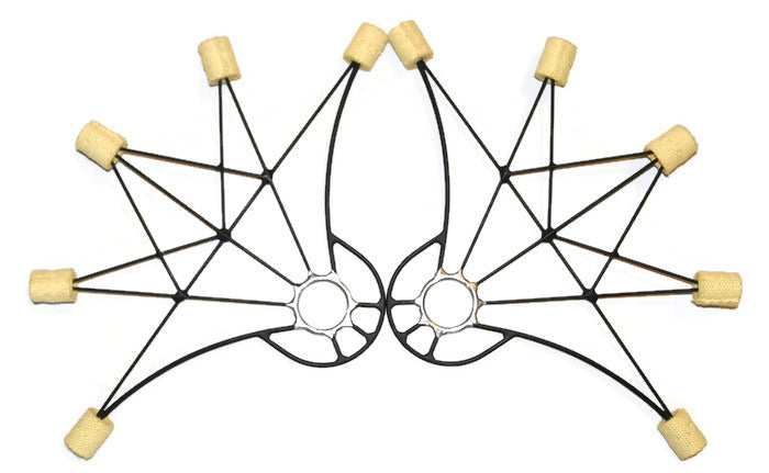 Five wicks on five individual spines provides isolation points on both the outside wicks as well as the center wick. The spines let your fingers assist the fan in rotations. The wicks are spread out to 180 degrees, granting a clean, true "S" relation as well as distributing the weight to the center of the fan, thus allowing for balance and strength all the way through the fan.The smooth curved spine allows for rolling around the body and arms as well as giving a sleek profile to the frame.